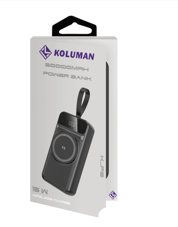 پاوربانک KOLUMAN K-P8 یک پاوربانک قدرتمند با ظرفیت 30000 میلیآمپر ساعت است که از شارژ بیسیم 15 وات پشتیبانی میکند. این مدل گزینهای مناسب برای کاربرانی است که به دنبال شارژ راحت و بدون کابل برای موبایل و گجتهای سازگار هستند.