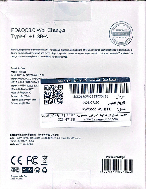 شارژر دیواری 20 وات پرووان مدل PWC555
